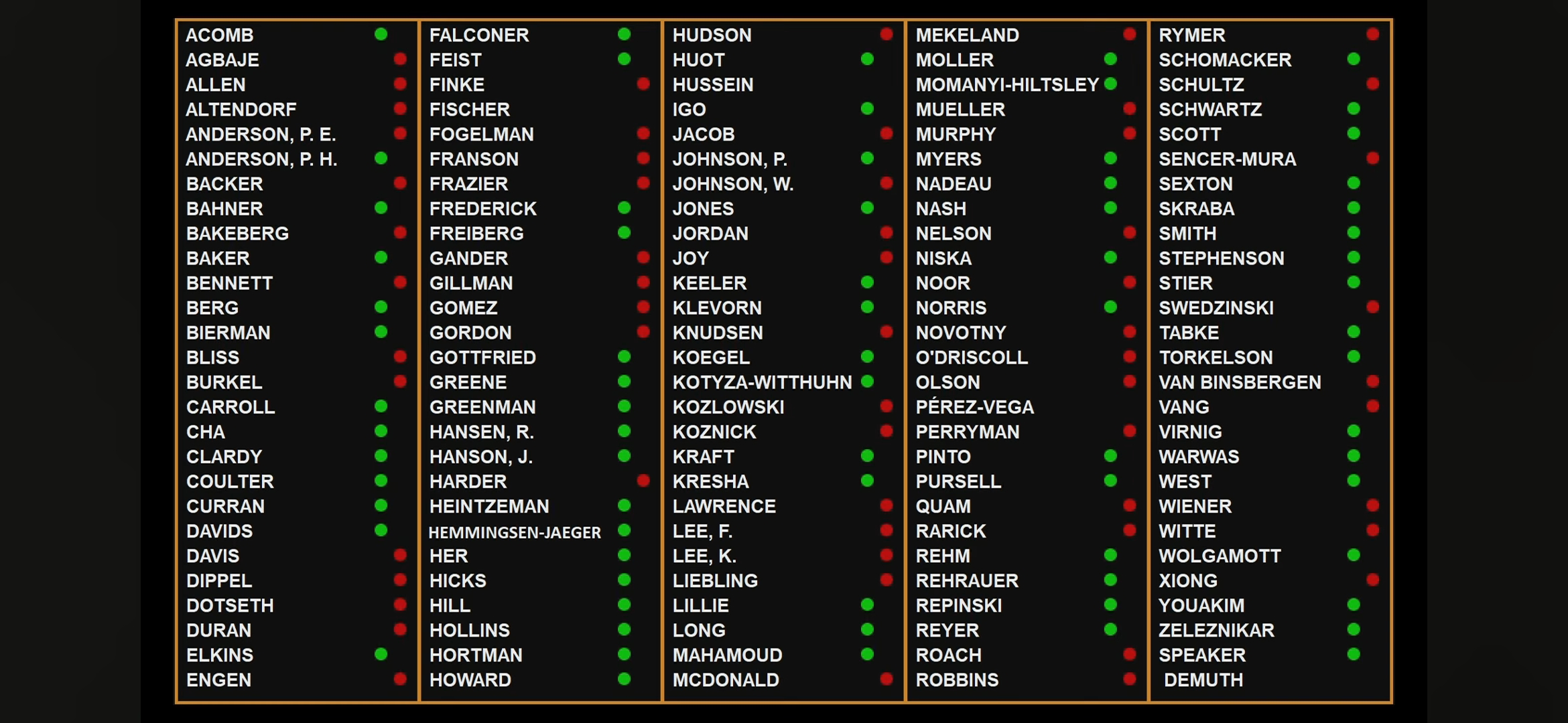 Woke universities and colleges across our state are brainwashing young adults with radical left ideologies and have openly opposed and worked against President Trump’s agenda to keep men out of women’s sports and locker rooms. With Republicans holding control of the House, serious negotiations could’ve been leveraged to ensure meaningful concessions. Universities and colleges should not serve political interests, they are meant to be educational institutions that can be as self-sufficient as possible. Notably, the University of Minnesota will be given over $750M despite high tuition rates (that have only been raised over the recent years, 6.5% increase next year). One item that was missing in the bill was the appointment of regents for the U of M, ceding the power to Walz. This bill additionally creates more regulations surrounding private career schools. As a multi-subject, big spending, unconstitutional omnibus bill, this should have been a non-starter and an easy no vote. The bill was passed 95-36 in the House and 36-31 in the Senate. See votes below: