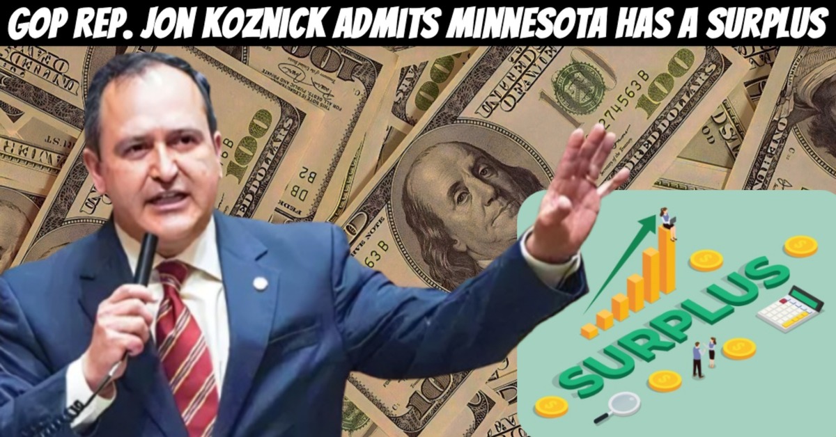 There is not a budget deficit, there is a surplus. If you only follow the mainstream media or Establishment politicians, you would never know this. While most legislative committee meetings are uneventful and filled with political theatre, GOP Rep. Jon Koznick (57A) admitted that Minnesota currently has a surplus in the House Transportation Finance and Policy Committee.