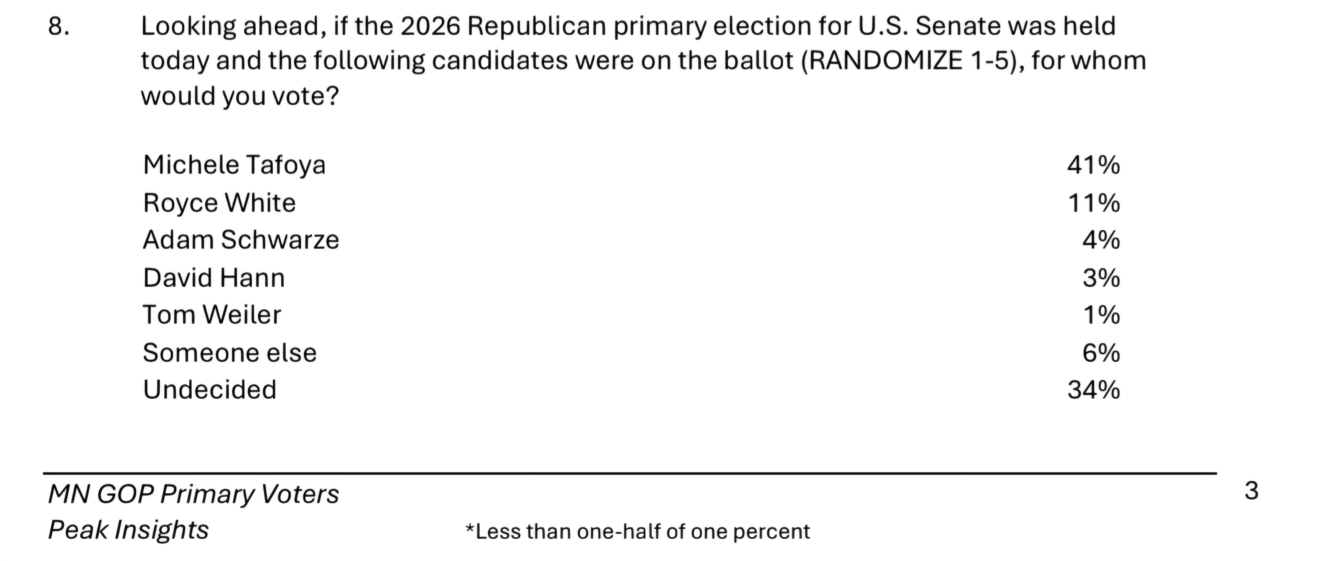 It seems highly unlikely that the popular 2024 GOP nominee for U.S. Senate, Royce White, would be polling at 11%. It also seems unlikely that Adam Schwarze, who has been doing tons of on the ground events with Republicans, would be at just 4%.