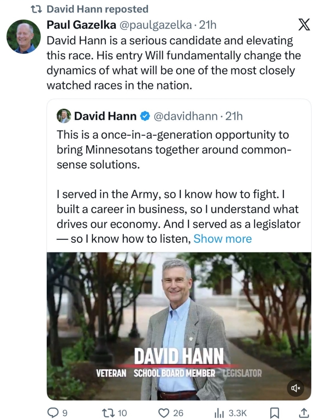 It appears one of the ONLY people excited for David Hann is RINO Paul Gazelka! See below: