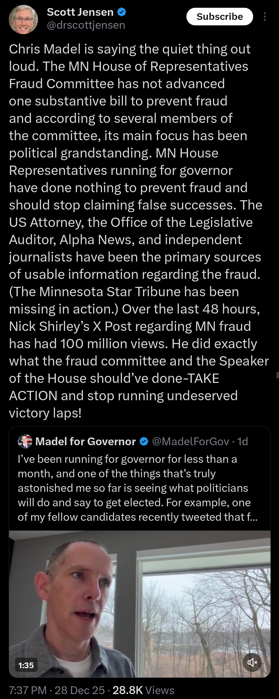 While Action 4 Liberty has long exposed the facade of the Fraud Committee, the viewpoint that they are nothing more than professional wrestling-politics is growing. A Youtuber did the work that the Fraud Committee should’ve been doing all along! Establishment GOP Governor candidates, Chris Madel and Scott Jensen, each slammed the useless Fraud Committee on X. See below: