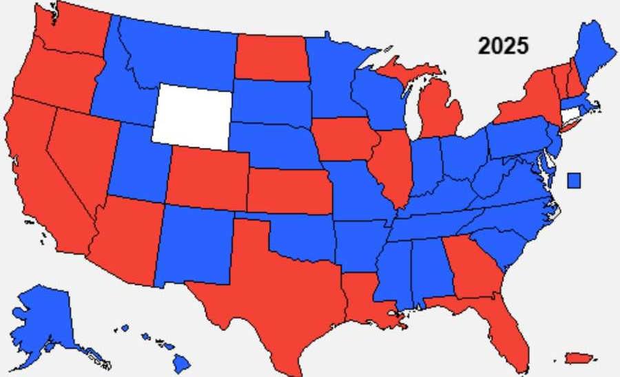 The National YR convention featured the Chair Hayden Padgett threatening to kick out pro-Trump delegates, the use of super-delegates positions like the DNC given to board members who serve with incumbent Hayden Padgett, so-called “state surveys” were used that manipulated delegate counts to hurt swing states, and delegates were blocked from being seated/had credentials pulled from delegates. Many online speculated that the election was rigged. Despite the obvious happening in their faces, the MN delegation voted for the Establishment incumbent slate. The RINO slate even passed around a bingo card mocking ideas like rooting out corruption, audits, and election integrity. See a map of how state YR delegations voted below, blue states voted for the Establishment slate and red states voted for the MAGA slate:
