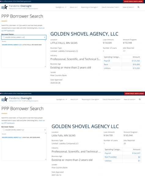 Kresha is a founding partner (co-owner) and chief financial officer (CFO) for Golden Shovel Agency LLC. As detailed in previous A4L reporting, the PPP loans Kresha’s company received totaled over $300K where he claimed to have 17 employees in April of 2020 and 20 employees in March of 2021. The related evidence and documents were given to a member of the House Fraud Committee, state Rep. Isaac Schultz (10B), but no action was ever taken by the committee. According to the Dept. of Treasury, businesses are prohibited from listing independent contractors as employees. See loans below: