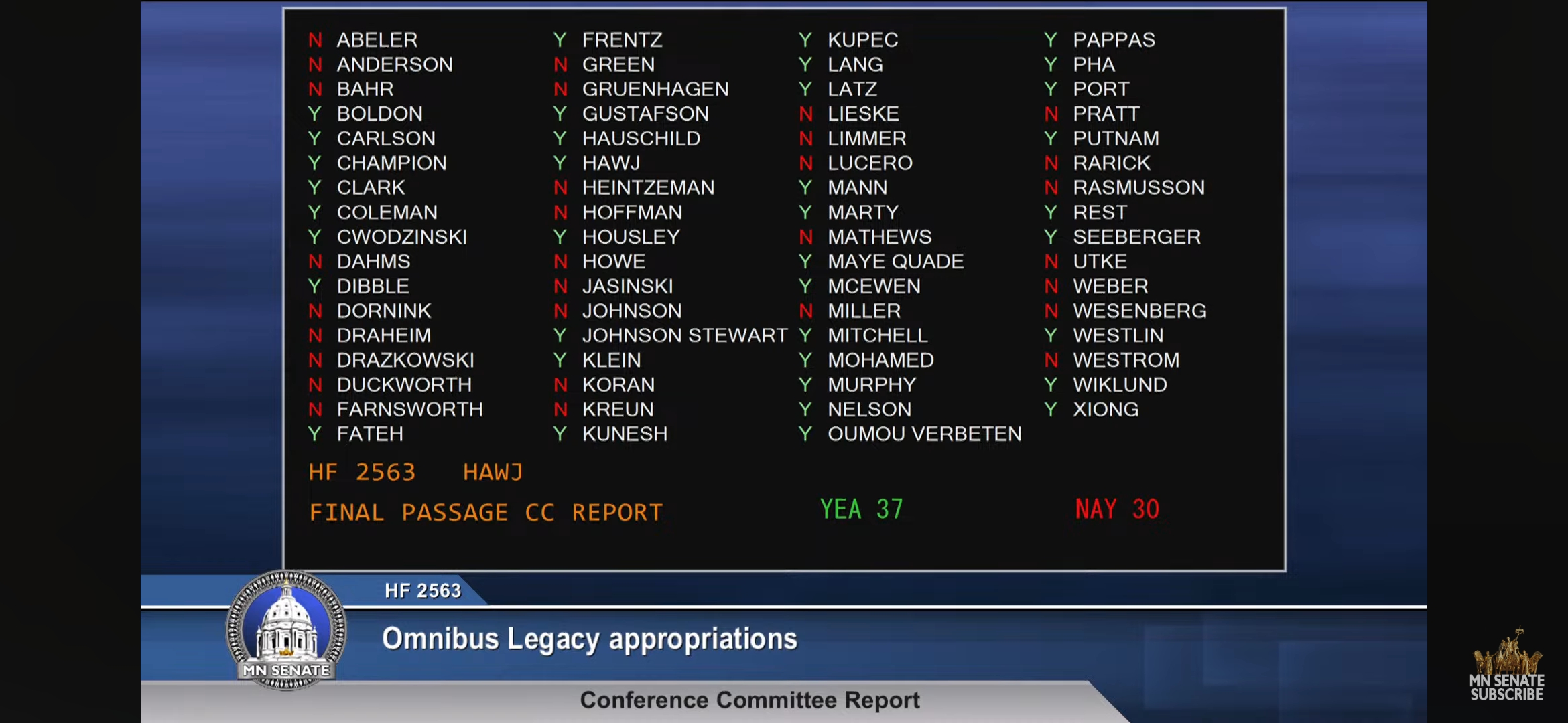 In the House, only 21 GOP Reps. voted no on the bill while the majority of “Republicans” (46/67) voted yes for the woke spending! On the bill’s final vote, all three GOP Reps running for Governor, Peggy Bennett (23A), Lisa Demuth (13A), and Kristin Robbins (37A), voted for the leftist spending. In the Senate, only RINOs Julia Coleman (SD48), Karin Housley (SD33), Andrew Lang (SD16) and Carla Nelson (SD24) voted with the Democrats for the spending. See votes below for HF2563: